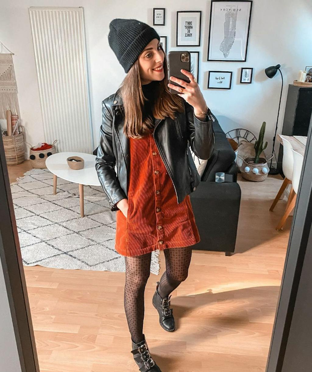 Je suis absolument ravie de cette salopette par la qualité du velours et en particulier de sa légèreté, sa couleur (burgandy) c et sa coupe.